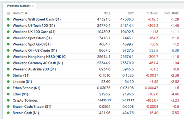 But I digress. Let’s get back to see how the markets are going……….and the very thin IG Weekend is all we’ve got, so it’ll have to do for now………