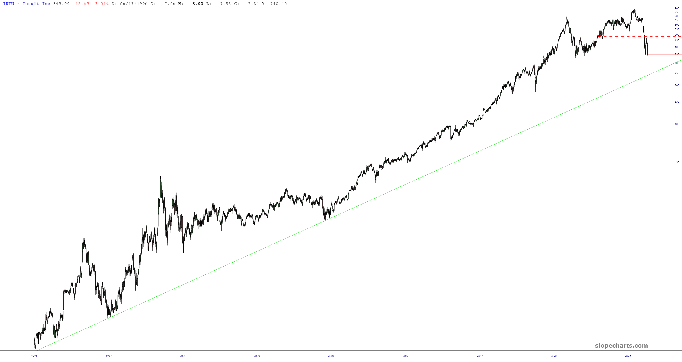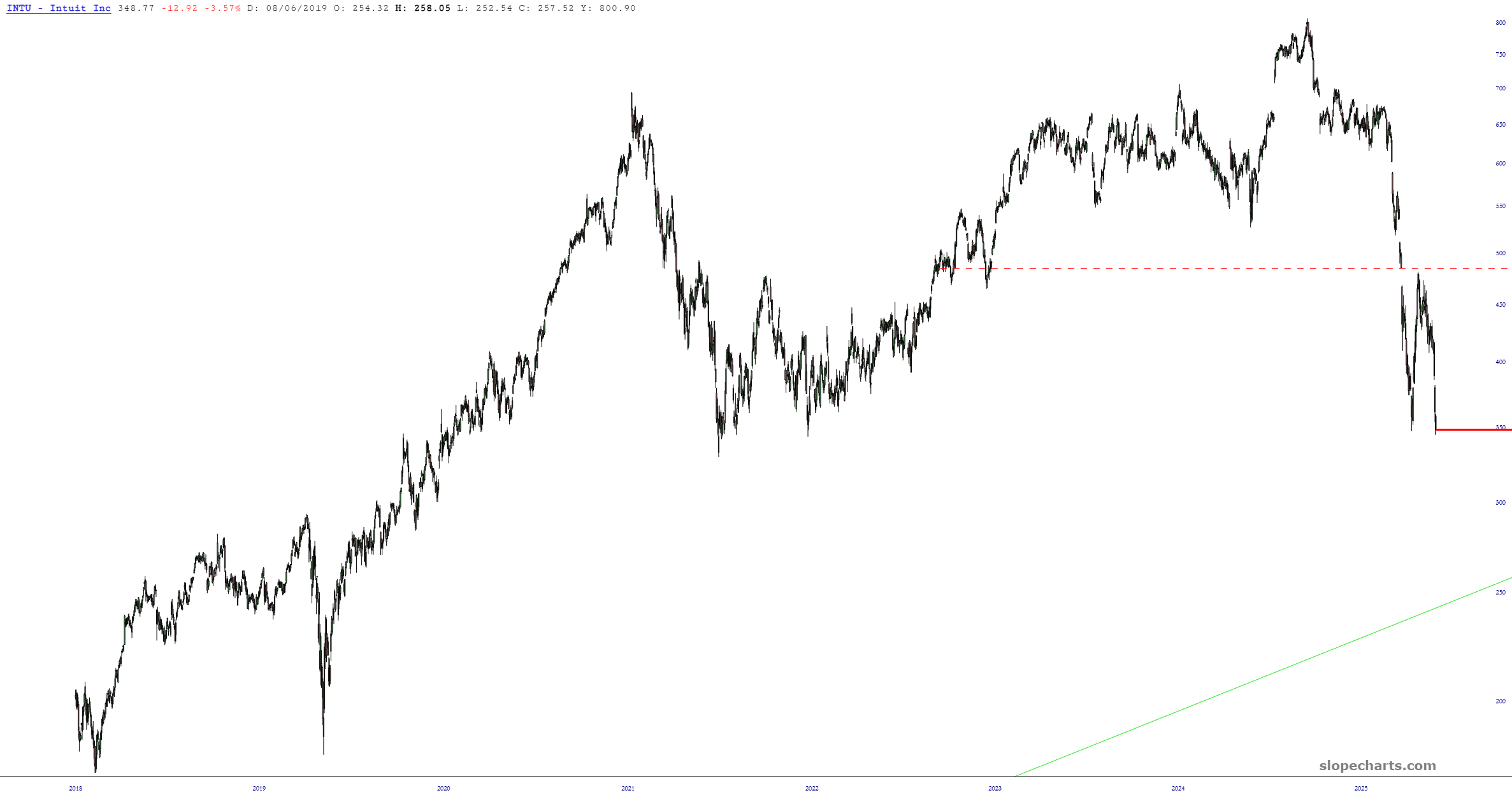 The moment I saw this, I instantly thought of Intuit (INTU), a household name and a public company that’s been around for decades whose value has declined by almost 60% in only nine months!!