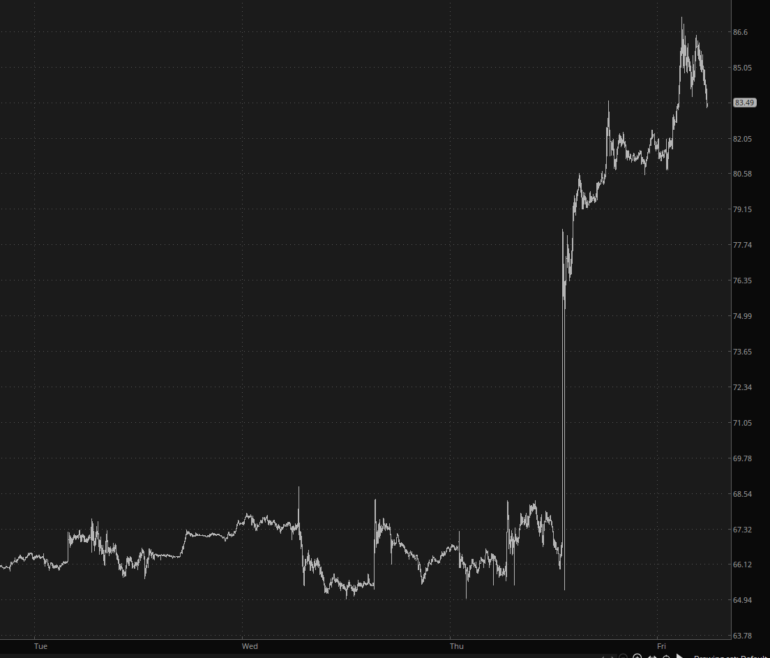 Powered, principally, by semiconductors. The performance that the likes of Micron and Intel (below, up an amazing 25% overnight) have been throwing off has been kerosene on the fire of SMH, which looks like it might be headed to a historic 18th day in a row of a net positive change.