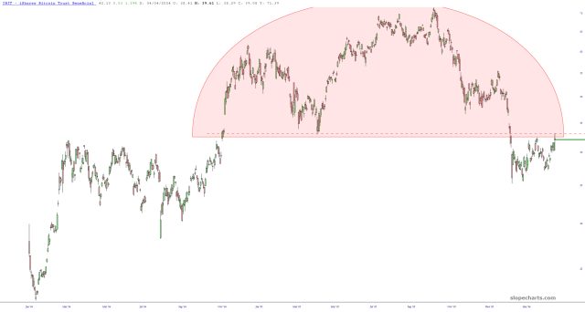 Earlier today, I shorted IBIT in size (my largest position) at a price of 42.67 with a stop at 43.20. So far, so good.