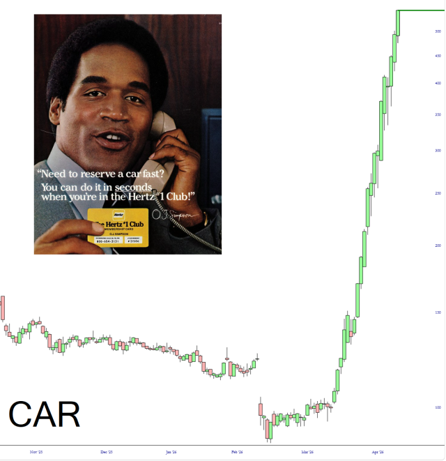 When Will It Stall? By Tim Knight - 4 hours ago (20, Apr 2026 12:00:00 PM) The 440% price increase for Avis Budget (CAR) in the span of a few weeks is one of those things they’ll be writing about in financial history books decades from now. This is just………..bonkers. « Prior Next » https://slopeofhope.com/2026/04/when-will-it-stall.html When Will It Stall? In order to comment on this blog, you must have JavaScript installed and enabled. « Prior Next »