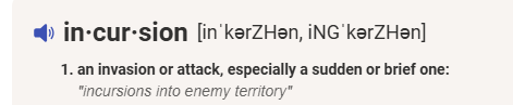 Now let’s tackle the one that really gets under my skin. Kindly note the definition of the word incursion: