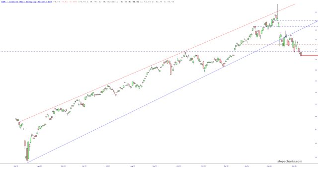 I believe precious metals miners are close to exhaustion, such as GDX and GDXJ, shown below. I’ve shorted the first one with a stop-loss price of 96.20.