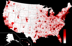 Pretty much looks like population density. There's one area that sticks out in SW Georgia. Albany is about 70K people but it's a pretty big spot on the C19 map. I can only assume it's due to the Marine Corps Logistics Base there.