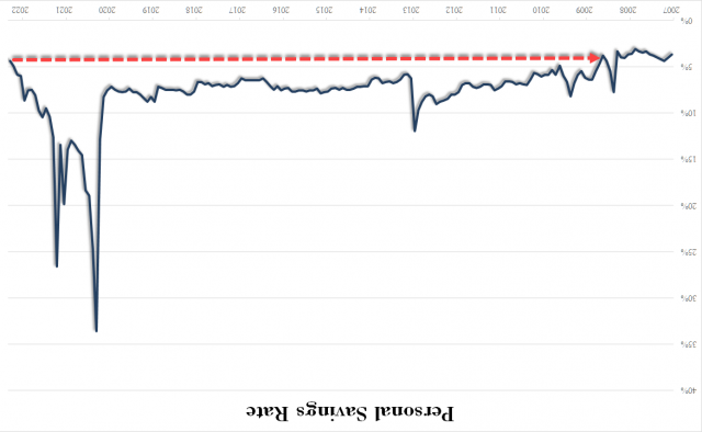 Clearly you are not adept at reading this chart, because ALL the media says the consumer is flush with savings.