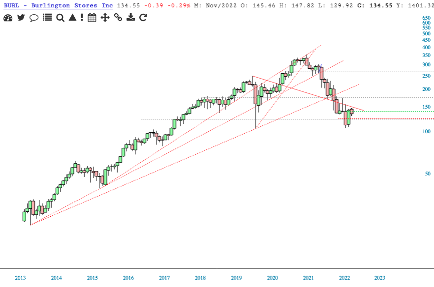 BURL topped in Aug 2021. Doesn't report earnings until Nov 22.