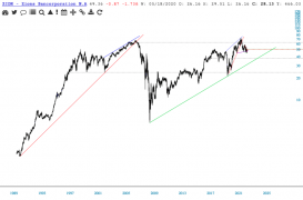 The 2nd chart could be an expiring B-wave up from the bottom of the green TL. If so, would expect to revisit that low . . .