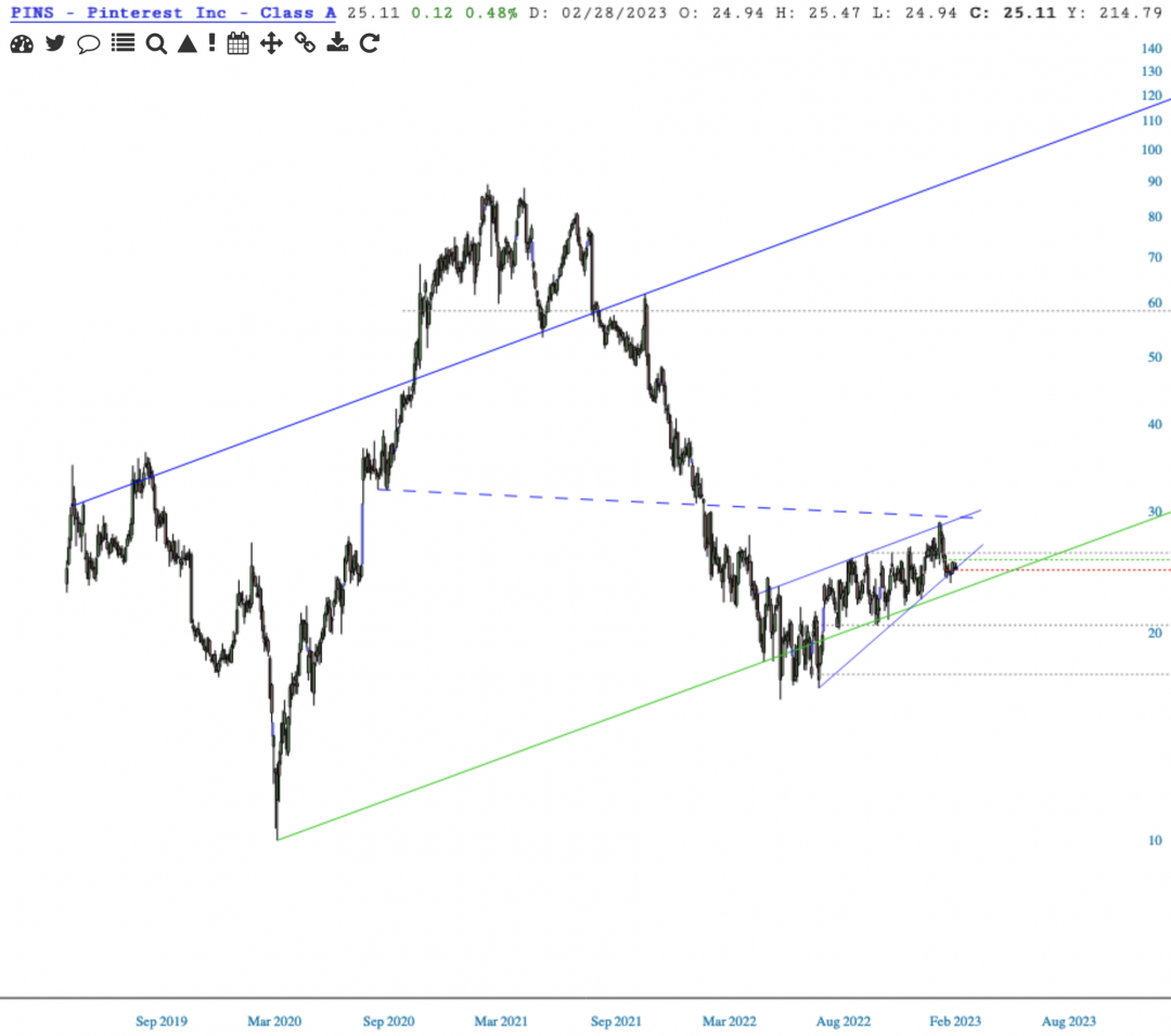 Note the flat monthly horizontal resistance on PINS - unable to cross above for five months.