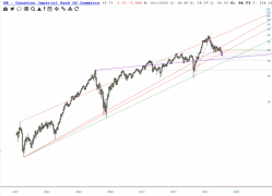 For any bounce to negate the current bearish trend, price must overcome resistance of the channel first and then the lower 1998 trend line.