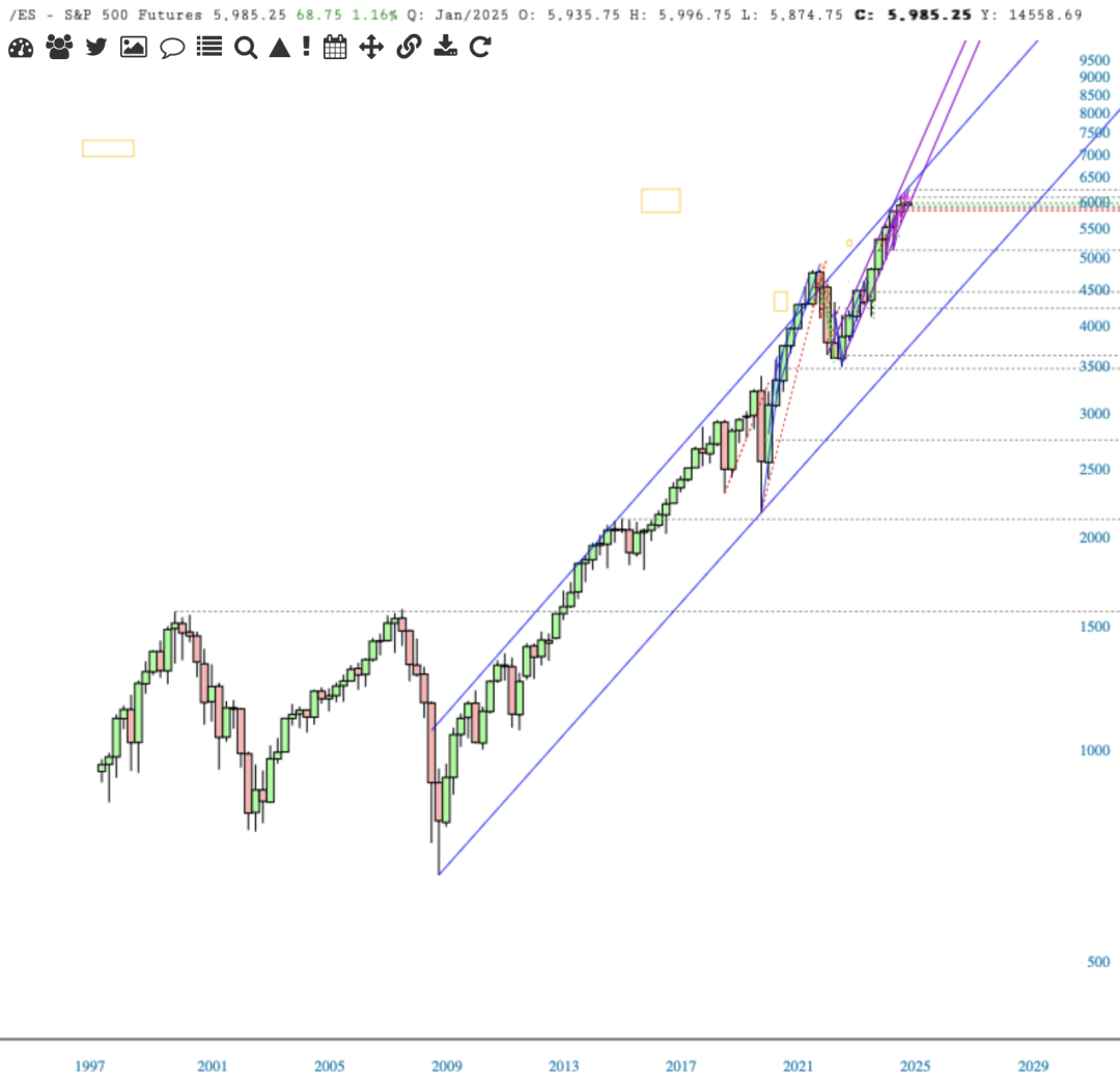 /ES - My chart with Adam's (horizontal) lines of support and resistance.