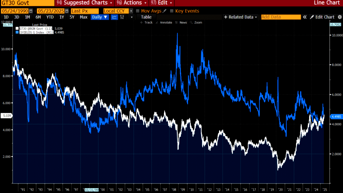 30yr UST yields now > S&P EPS yield for the 1st time in 23 years.