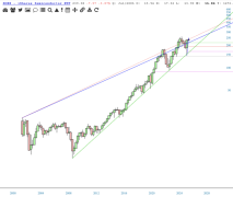 Red and Green horizontals are top and bottom of Ichimoku Cloud,with a gap aligned almost perfectly with the Cloud's bottom.