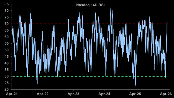 From oversold to overbought in record time in the Nasdaq too, just like last year.