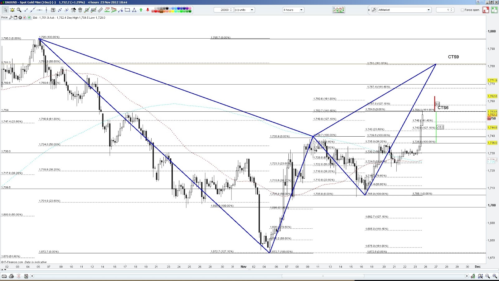 Believe it or not traders we are very close to the end of 2012 and the final sprint of this year promises lots of volatility and movement which means potentially lots of sound trading opportunities. Last weeks anticipation played out very nicely especially CAC40 had a rally of about +150 pips well done if you took advantage of it. Also worth mentioning EUR/USD Gartleys that netted about +60 pips of profit before taking out on protective stops. Obviously it was not just roses without spikes, particularly GBP/JPY gave a a busy time managing the losses. This market is topping for a fourth consecutive time according to indicators like Stochastics and RSI, however there was no meaningful movement based on those indicator values yet. That proves the point that indicators on their own if not useless are not enough to make trading decisions if they are not combined with price action analysis. Coming back to GBP/JPY pair example the short at 129.50's area was stopped out almost immediately in the timescale of 3 4 hours candles, taking me out on protective stops. Cutting positions when the market goes against becomes crucial part of trade plan execution in these kind of scenarios, as well as hedging the initial position (short in this case) helps to cut loser significantly and even turn losers into winner in some cases.