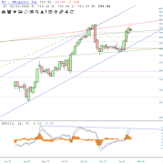 Gap filled. Trendline break, then backtest of same, only to reject and reverse lower. First support, 704ish.