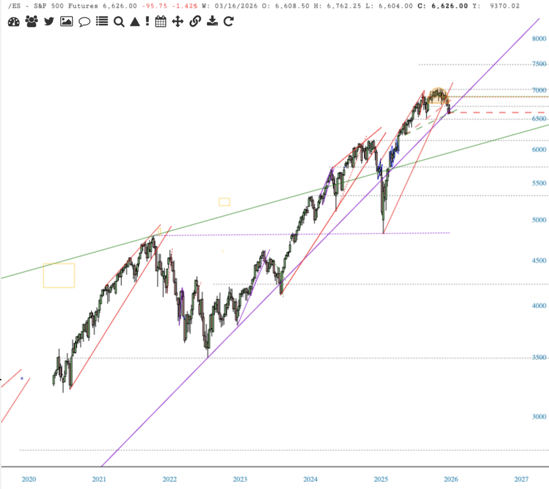 /ES - Dashed red horizontal is Tim's 6616 breakdown level.
