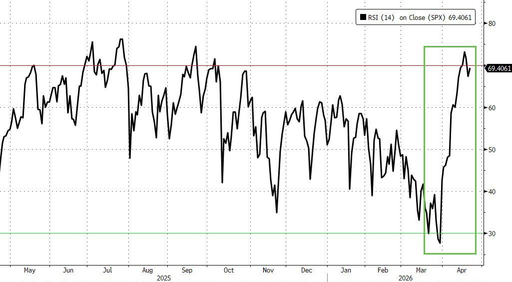 The RSI of S&P is 70, and the most intense spec buying is behind us now