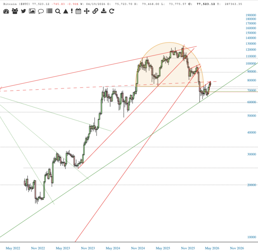 Nice chart. Looks like your first line of support on the last chart is 68,330.