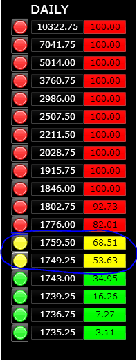 Basically the price area around 1738.50-1743.50 (Hourly-Daily) was showing a total combined of 90.73% odds (100% the Hourly + 81.45% the Daily, divided by 2). The ES was down for 5 hours in a row.