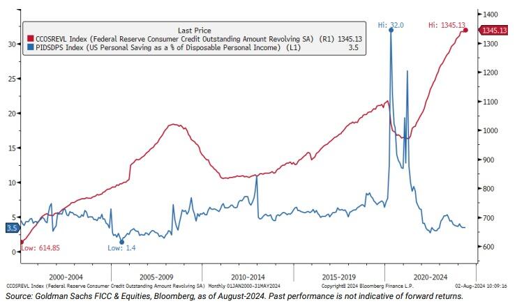 US household savings are at an all-time low and US credit card outstanding debt is at an all-time high since 2010...