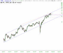 Coming off the channel top, lost the 2018 high uptrend line, now directly on top of Cloud support in a rising wedge.