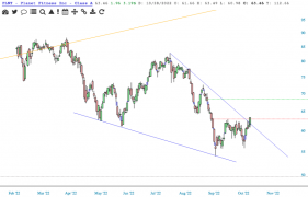 Descending wedge that breaks to the upside or slanted head and shoulders?