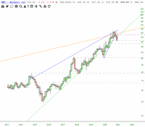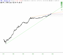 If WMT holds this 133 support level, the next best time to short is after retest of the bottom of the green trendline from 1974.