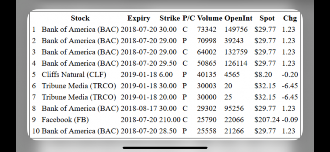 Unusual options activity week of jul 16