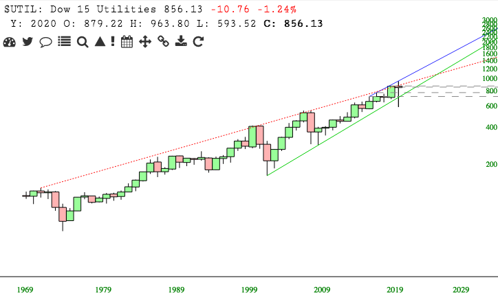 $UTIL - to remain bullish monthly chart must close over the 2019 high. Long way until the end of the month, but not looking bullish now.