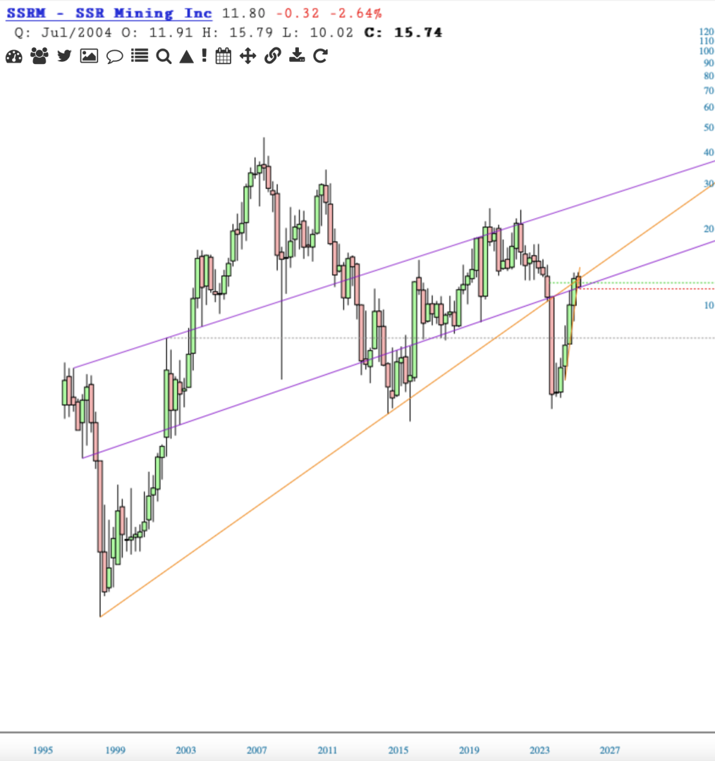 SSRM - Losing support of the lower purple channel line spells lower prices.