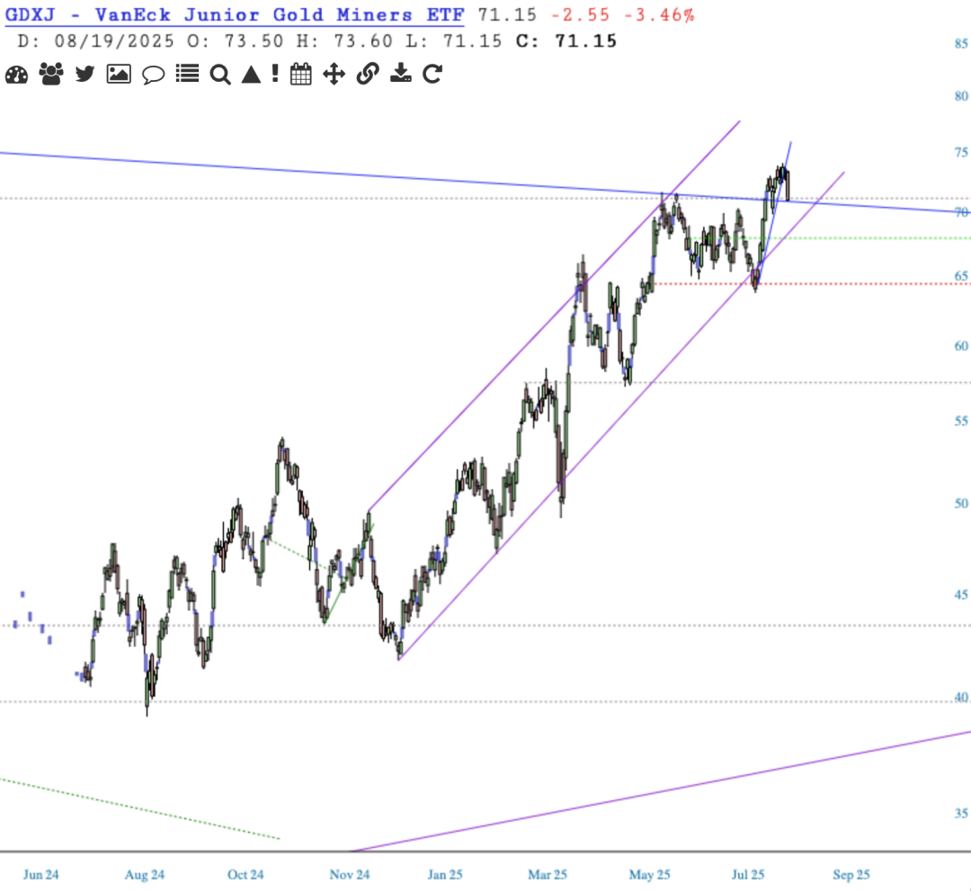 GDXJ fell (thus JDST down), hitting some support.
