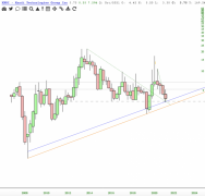 KNDI offers a possible long opportunity but only if above top green trendline.