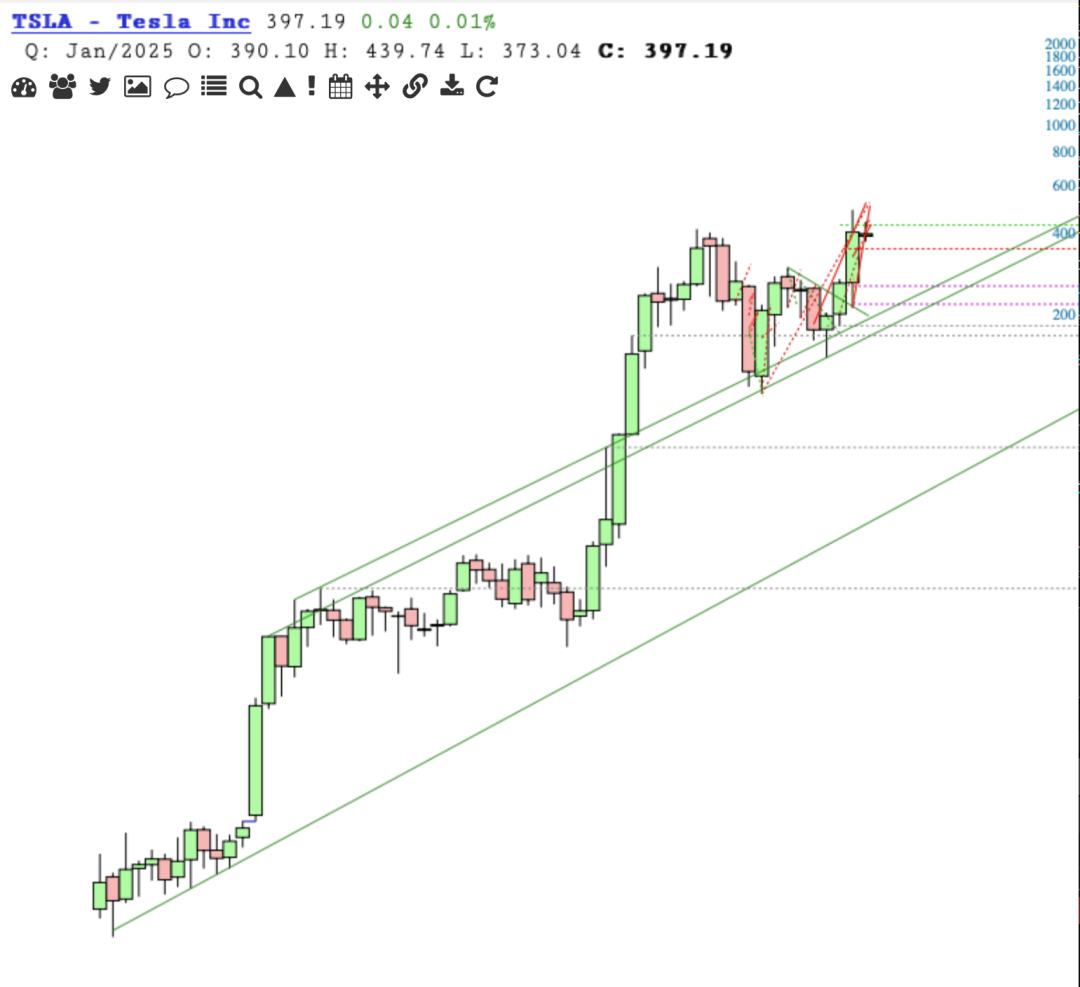 TSLA got hit every which way at the top. Breakdown, backtest, breakdown, backtest, breakdown... Lower gaps looming large.