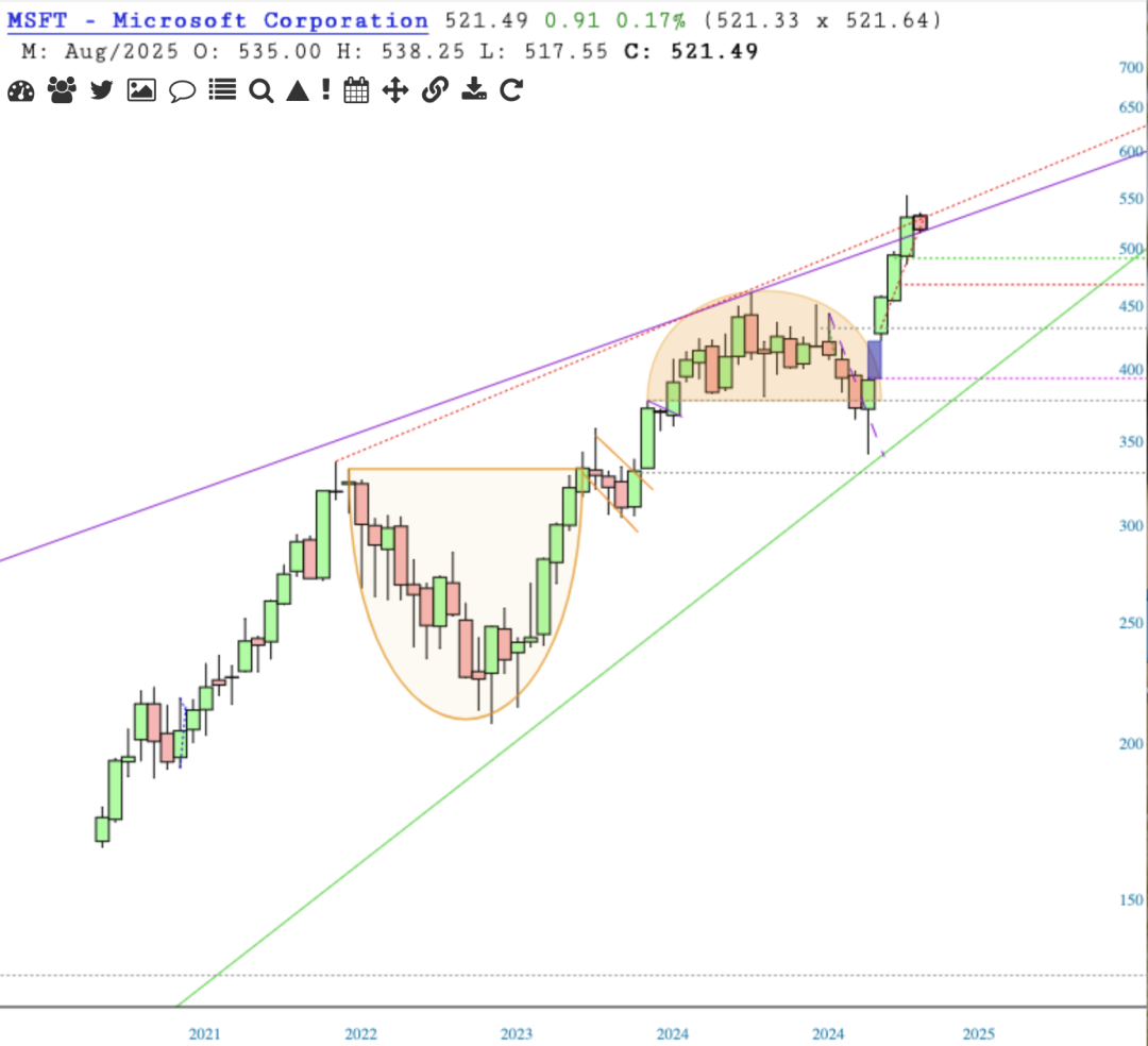 MSFT loosing steam. May drop to bottom of Cloud or even further to next horizontal support around 434.