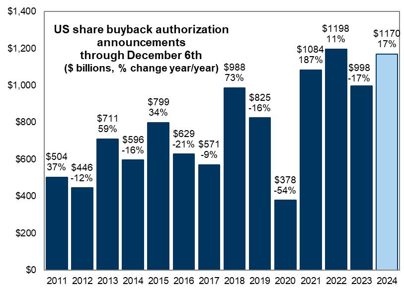 US Corporates are set to repurchase another $1 Trillion worth of shares in 2025.