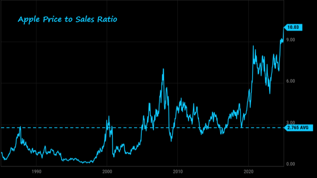Apple is now trading at over 10x sales, the highest valuation level in company history.